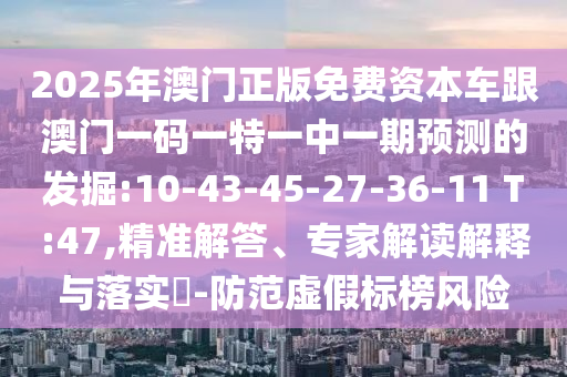 2025年澳門正版免費(fèi)資本車跟澳門一碼一特一中一期預(yù)測的發(fā)掘:10-43-45-27-36-11 T:47,精準(zhǔn)解答、專家解讀解釋與落實(shí)?-防范虛假標(biāo)榜風(fēng)險(xiǎn)