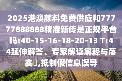 2025港澳顏料免費供應和77777888888精準新傳是正規平臺嗎:40-15-16-18-20-13 T:44:延伸解答、專家解讀解釋與落實?