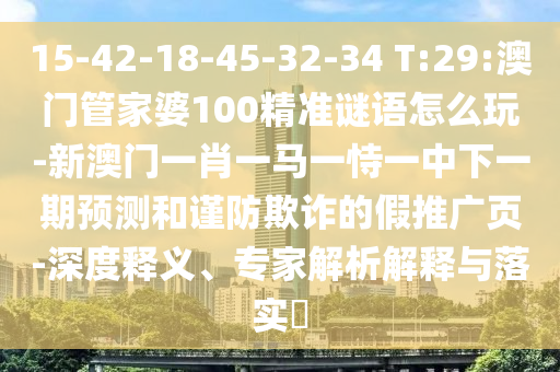 15-42-18-45-32-34 T:29:澳門管家婆100精準謎語怎么玩-新澳門一肖一馬一恃一中下一期預測和謹防欺詐的假推廣頁-深度釋義、專家解析解釋與落實?