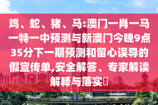 雞、蛇、豬、馬:澳門一肖一馬一特一中預測與新澳門今晚9點35分下一期預測:安全解答、專家解讀解釋與落實?
