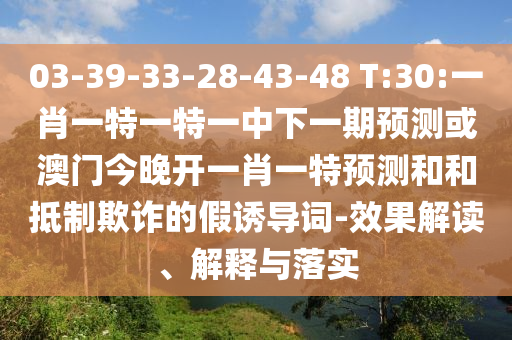 03-39-33-28-43-48 T:30:一肖一特一特一中下一期預測或澳門今晚開一肖一特預測和和抵制欺詐的假誘導詞-效果解讀、解釋與落實