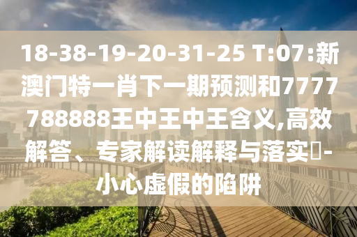 18-38-19-20-31-25 T:07:新澳門特一肖下一期預測和7777788888王中王中王含義,高效解答、專家解讀解釋與落實?-小心虛假的陷阱