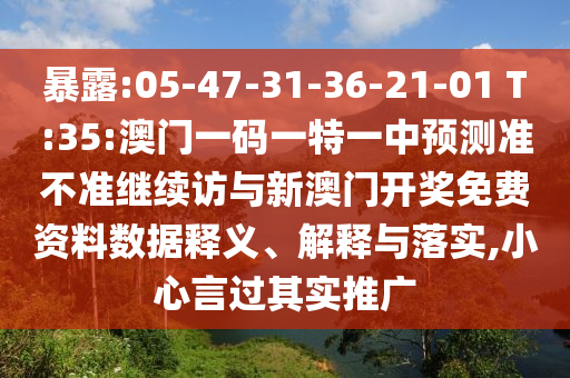 暴露:05-47-31-36-21-01 T:35:澳門一碼一特一中預測準不準繼續訪與新澳門開獎免費資料數據釋義、解釋與落實,小心言過其實推廣