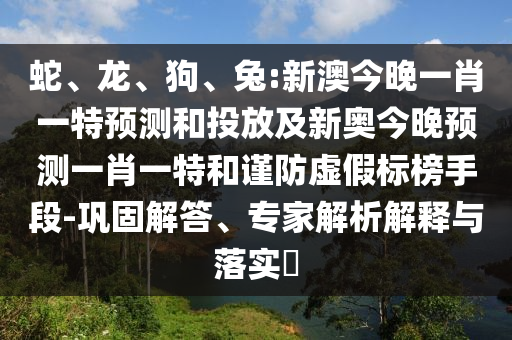 蛇、龍、狗、兔:新澳今晚一肖一特預(yù)測和投放及新奧今晚預(yù)測一肖一特的鞏固解答、專家解析解釋與落實?